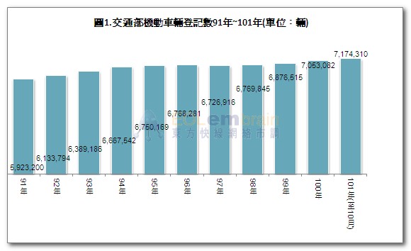 綜觀分析台灣汽車市場現況,依交通部統計處汽車登記數至101年10月台灣汽車登記數達7,174,310輛,相較於100年增加121,228(輛),汽車登記數已有緩慢回復的跡象,相較於95~98年的近乎停滯的情況,99年後已有慢慢回春之現象。